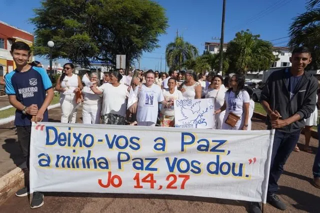 A concentração teve início em frente ao hospital local, de onde os participantes seguiram pelas principais ruas da cidade em uma caminhada simbólica, carregando cartazes com mensagens de paz, amor e respeito.