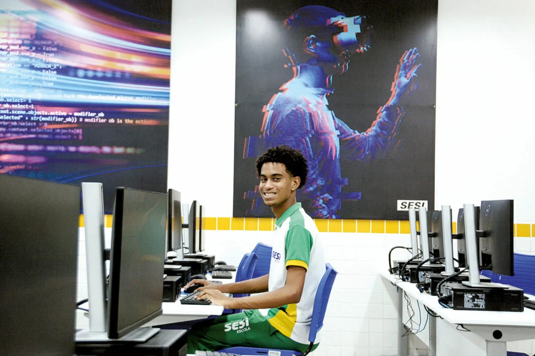 É nesse ambiente que jovens como Caio Henry, 17, aluno do SESI em São Gonçalo do Amarante, encontram oportunidades para desenvolver habilidades que vão da modelagem em 3D às olimpíadas científicas. Mais do que preparar para vestibulares, a proposta da unidade é formar cidadãos aptos a enfrentar desafios globais e se inserir em setores estratégicos da economia potiguar, como energias renováveis, mineração, têxtil e confecções. Somente entre 2021 e 2025, 7.970 alunos do SESI, entre ensino fundamental e médio, ocuparam vagas em setores como esses.