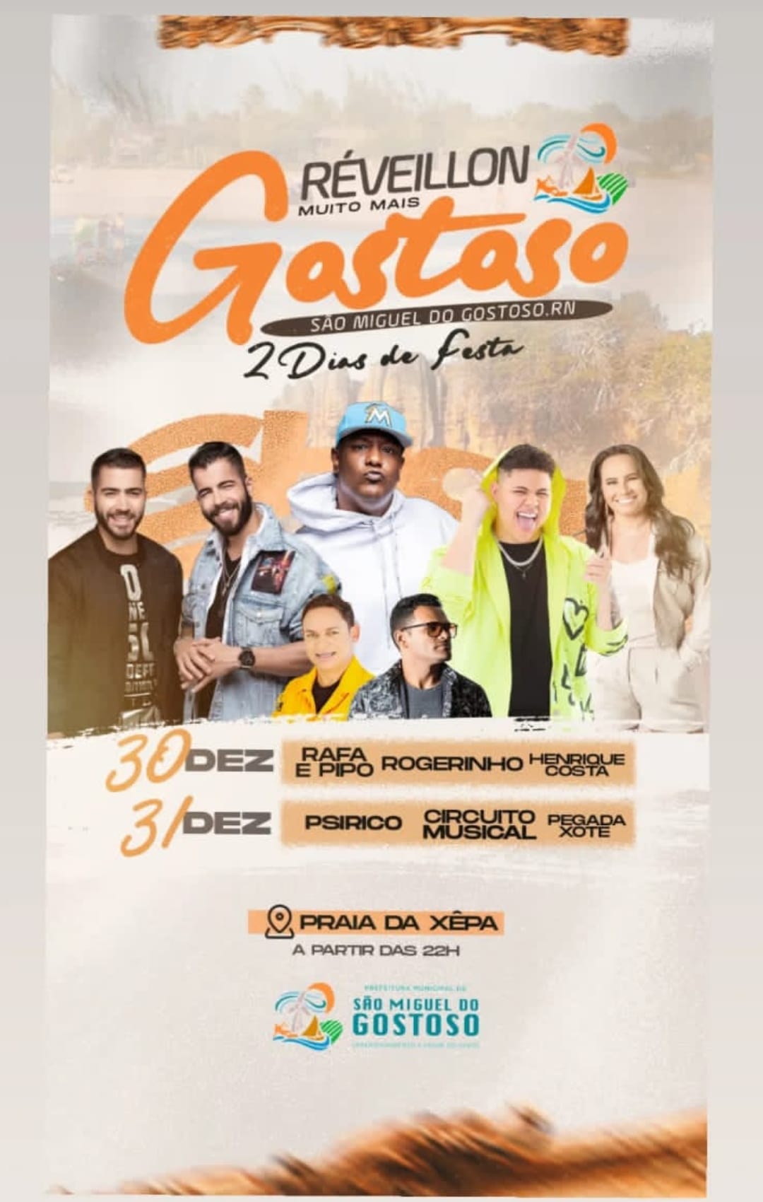 Anunciada as atrações do Réveillon Gostoso na Praia da Xepa em São Miguel do Gostoso nos dias 30 e 31 de dezembro.