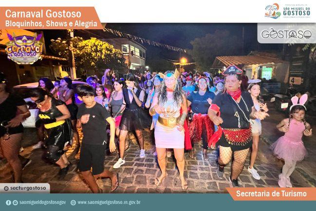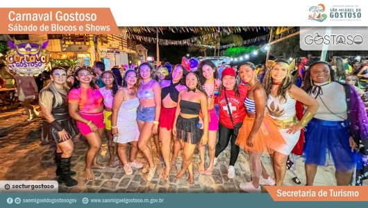 Blocos também ganharão as ruas da cidade durante os quatro dias (veja abaixo a programação). A secretária de Turismo de São Miguel do Gostoso, Janielle Linhares, destacou que a festa foi pensada para os moradores e para os visitantes. Ela afirmou que a rede hoteleira estará com alta ocupação no período da folia, e lembrou que restaurantes, bares, beach clubs e pousadas também terão atrativos no carnaval.