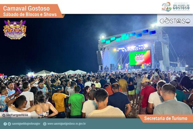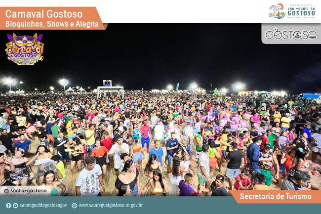 Um dos principais destinos turísticos do Rio Grande do Norte, São Miguel do Gostoso preparou programação especial para o Carnaval 2024. De sábado (10) a terça-feira (13), atrações nacionais e regionais se apresentam em palco armado na Praia da Xêpa. Os shows são gratuitos, começando às 21h em todos os dias.