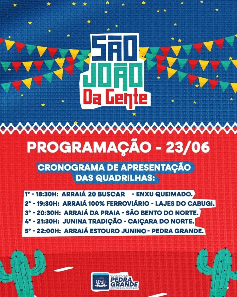 Governo de Pedra Grande divulga programação do “São João da Gente” para esta sexta (23)