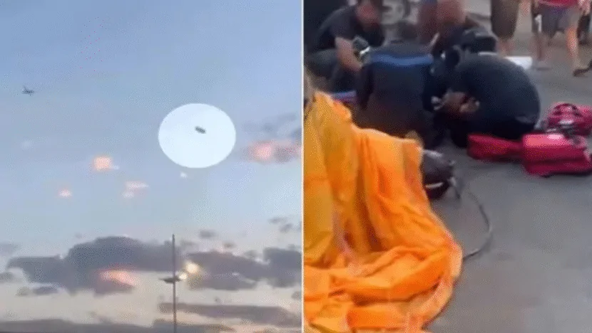 Uma mulher de 35 anos ficou gravemente ferida após cair durante um salto de paraquedas em Anápolis, a 55 km de Goiânia, no último fim de semana. O momento da queda e do resgate foi registrado em vídeo por moradores da região.